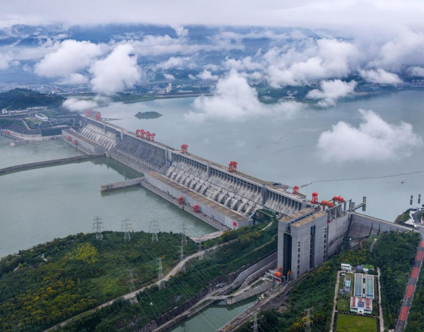 9月11日,在湖北省宜昌市拍摄的三峡水利枢纽工程(无人机照片)。