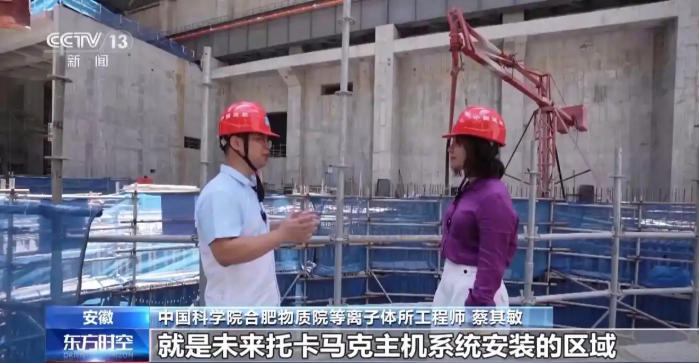 中国科学院合肥物质院等离子体所工程师 蔡其敏:在未来托卡马克主机系统安装的区域,未来高达1亿度等离子体的运行就在这里。在我们的装置里面,冰火两重天,1亿摄氏度的高温等离子体要与零下269摄氏度的低温共同存在一个罐体里面。