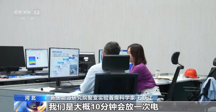 新奥能源研究院聚变实验首席科学家 石跃江:我们大概10分钟会放一次电,反复去尝试去优化我们的整个运行的控制参数,达到我们的实验目标。